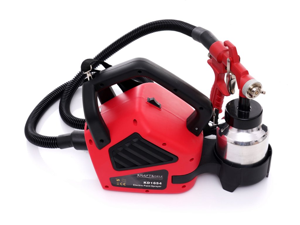 Пистолет за боядисване 600 W 1000 ml KD1654 — Професионален пистолет за пръскане намира приложение при боядисване на повърхности с лакове на водна основа, акрилни грундове, шпакловки, металикови и перлени бои. Благодарение на устройството може да достигне до труднодостъпни места, осигурява равномерно покритие на неравни, кръгли, мрежести повърхности и т.н. Работата се съкращава и улеснява.