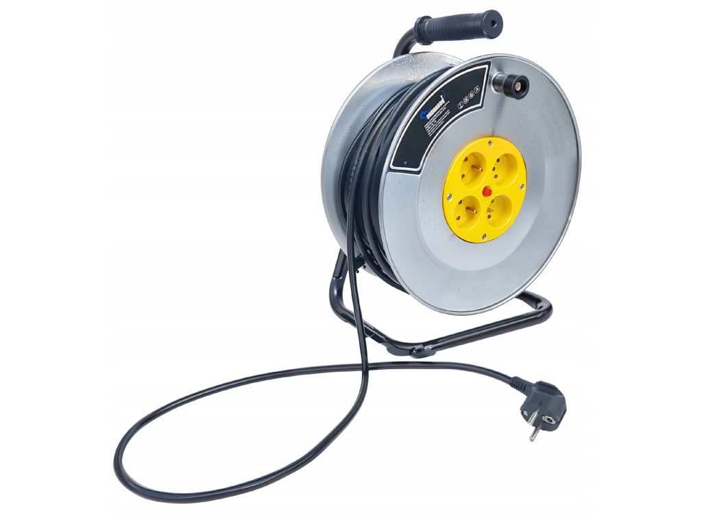 Строителен удължителен кабел на барабан 25м 3x2,5 4 гнезда е идеалното решение за ползване на строителни площадки, в работилници, градини и домакинства. Този удължителен кабел е навит на здрав метален барабан, оборудван с четири контакта със заземяване и ключ, което гарантира безопасна и удобна употреба.