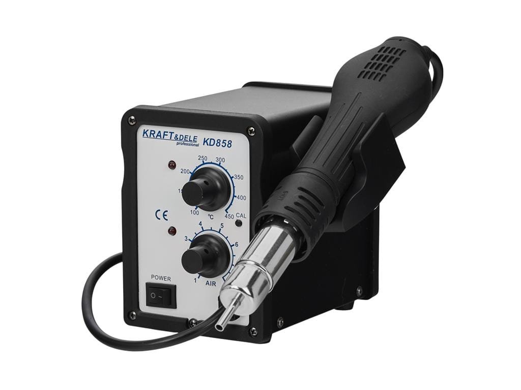 Заваръчен апарат за пластмаси 2 в 1 с 4 дюзи KD858 от марка Kraft&Dele е много полезно устройство за всички, които се нуждаят от бързо свързване на пластмасови части. Заваръчният апарат разполага с плавна регулация на температурата на върха и плавна регулация на силата и температурата на издухания въздух. Той е оборудван със система за автоматично охлаждане след приключване на работа, което значително удължава живота на нагревателното тяло. Заваръчният апарат има LED дисплей, който показва температурата на горещия въздух. Регулирането на температурата и мощността се осъществява с помощта на въртящи се копчета.