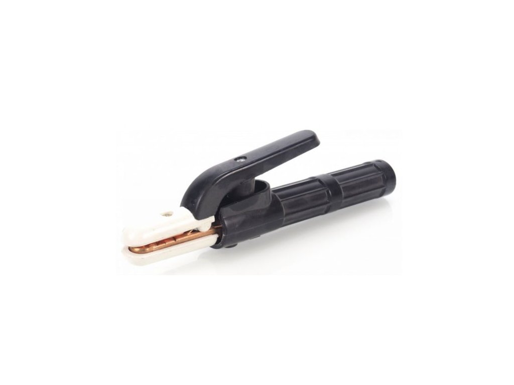 Здрав държач за заваряване с електроди, изработен от висококачествени материали. Рамото е изработено от месинг, а дръжката — от изолирана пластмаса. Цялото изделие е изработено от материали, устойчиви на високи температури.