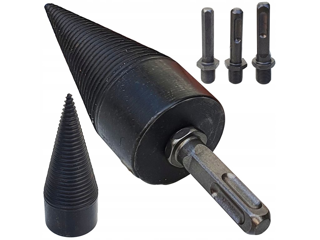 Това свредло за цепене на дърва, конусовиден цепач е изработено от висококачествена, устойчива стомана, която гарантира дълъг експлоатационен живот и висока издръжливост на износване. Благодарение на оптималното двойно назъбване и прецизно проектираните пропорции, това свредло е изключително ефективно при цепене на дърва. Комплектът включва три различни адаптерa, които осигуряват бърз и лесен монтаж към повечето електрически инструменти.