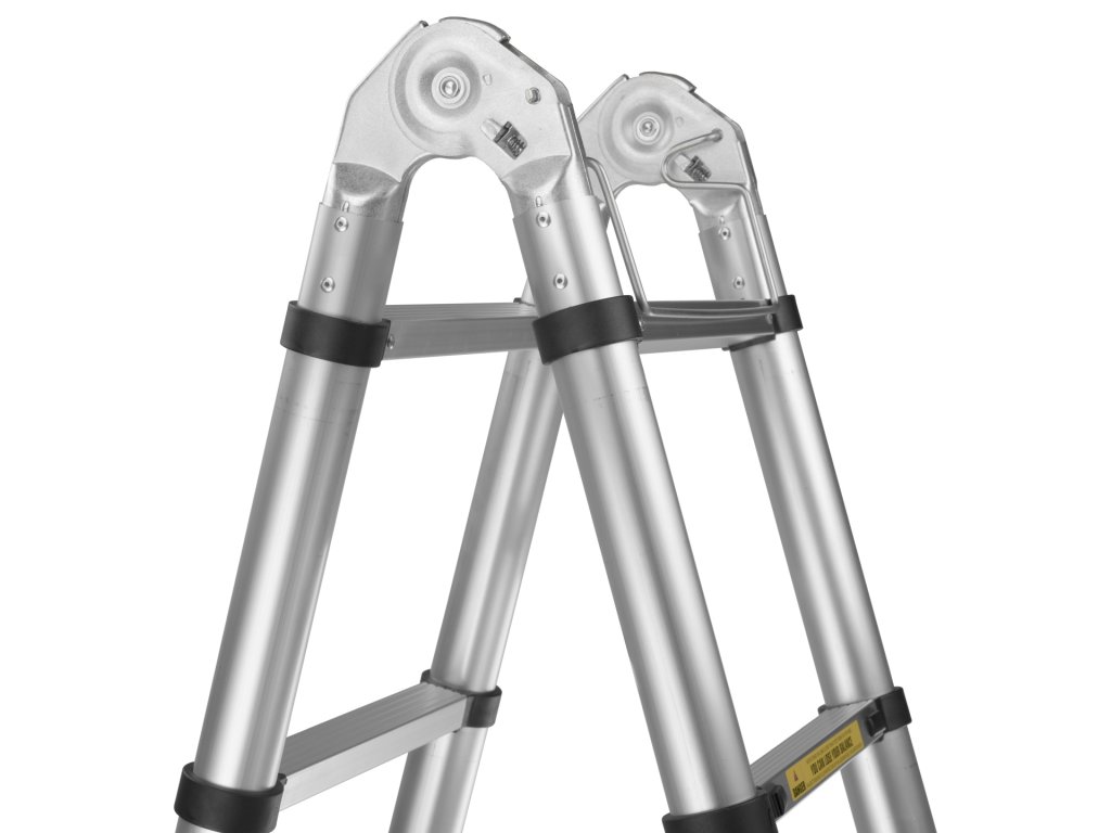 Секциите на телескопичната стълба могат да се издърпват и прибират, което позволява гъвкаво регулиране на нейната дължина. Този механизъм превръща стълбата в универсален инструмент, който може да бъде адаптиран към различни задачи – дали трябва да работите на високо или на трудно достъпни места. Благодарение на шарнирните връзки, стълбата може да бъде настроена под различни ъгли или в форми като буквите А, L и други конфигурации според нуждите.