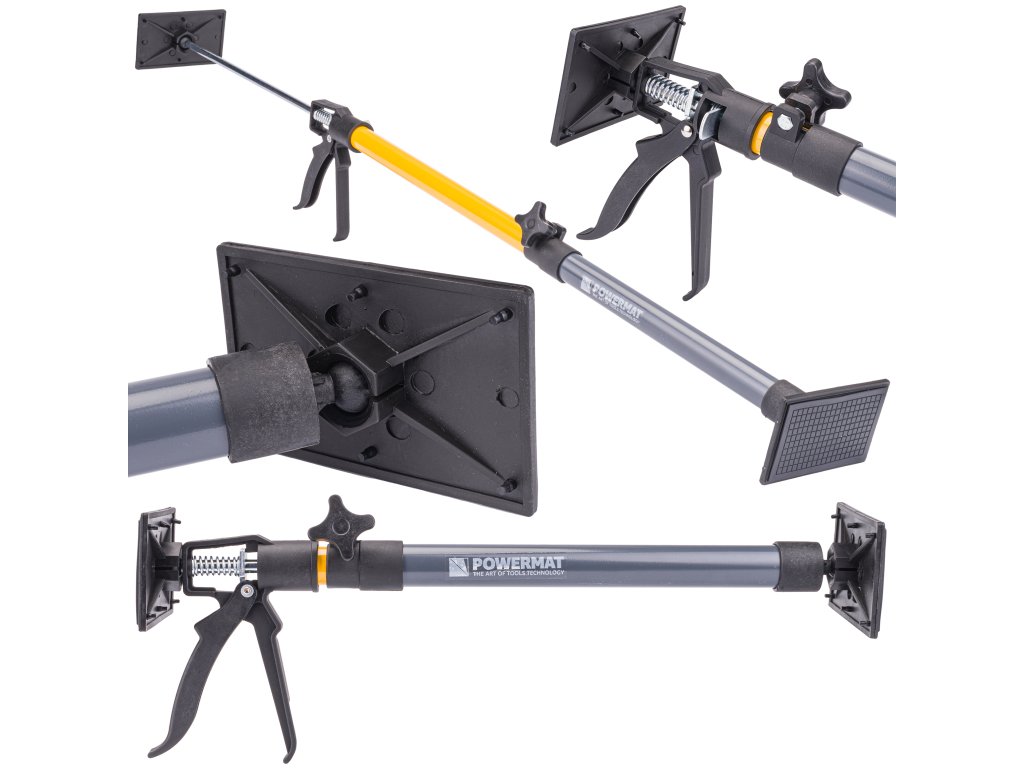 Телескопичната подпора за гипсокартон 50-115 см PM-PT-50115T е идеална за монтаж на окачени тавани и стени с гипсокартон под трудни ъгли, както и при ремонти на залепени повърхности. Благодарение на телескопичната функция, височината може лесно да се регулира, а накланящите се опорни плочи осигуряват стабилно захващане.