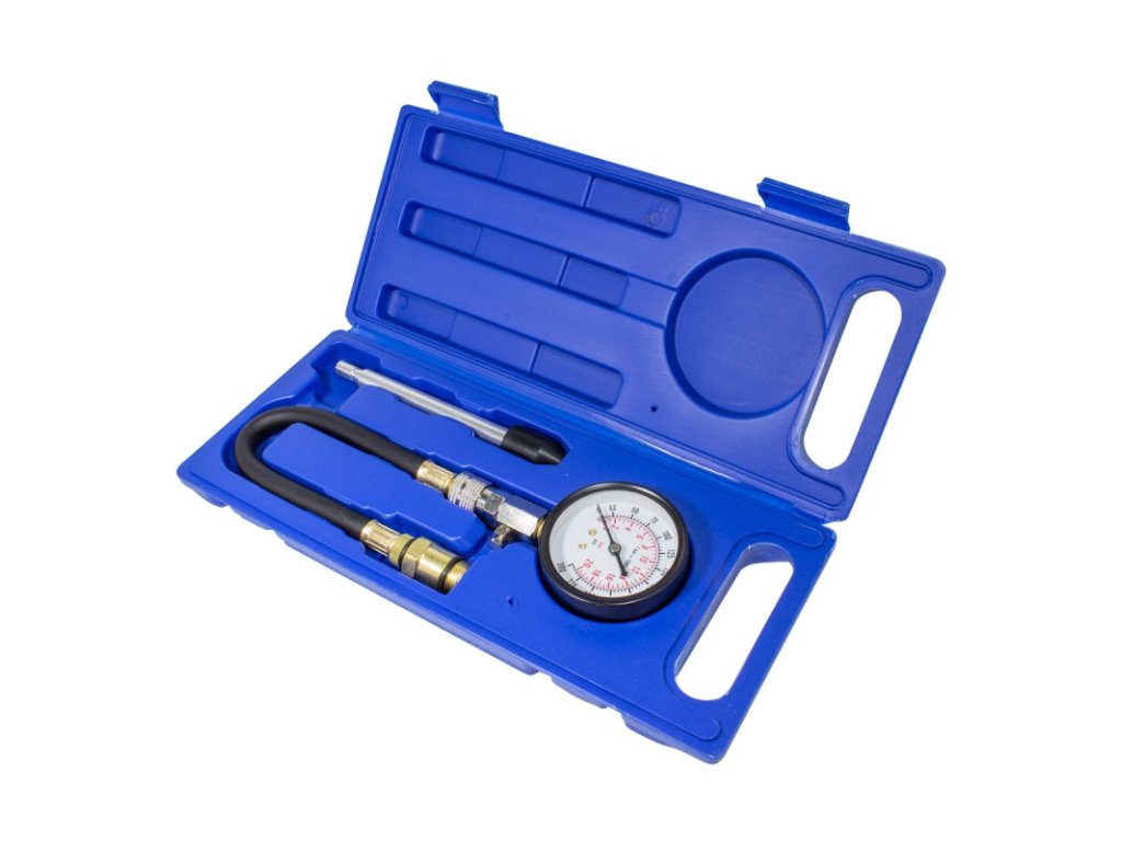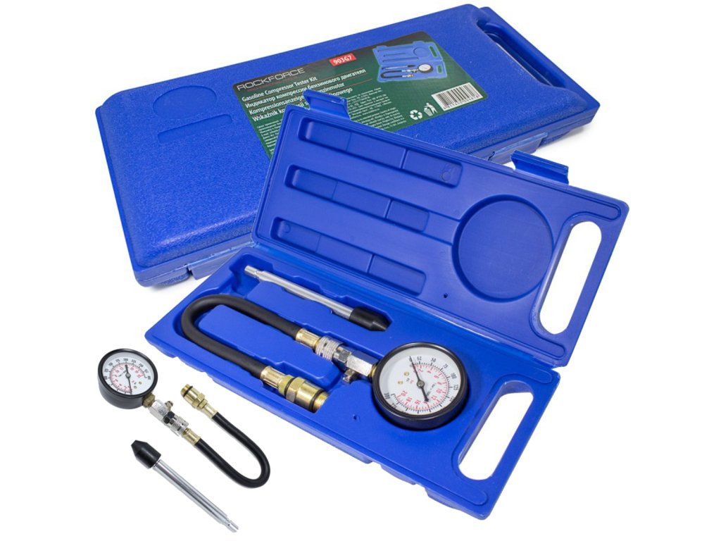 Комплектът служи за проверка на налягането на компресия в цилиндрите на бензинови двигатели.