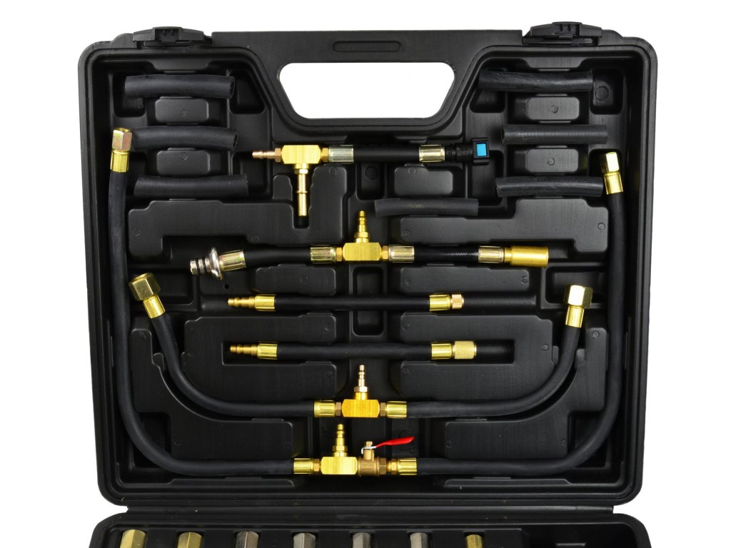 Този многофункционален комплект е проектиран за прецизно измерване на налягането на горивната система при бензинови двигатели. Комплектът е съвместим с повечето японски, американски и европейски автомобили.