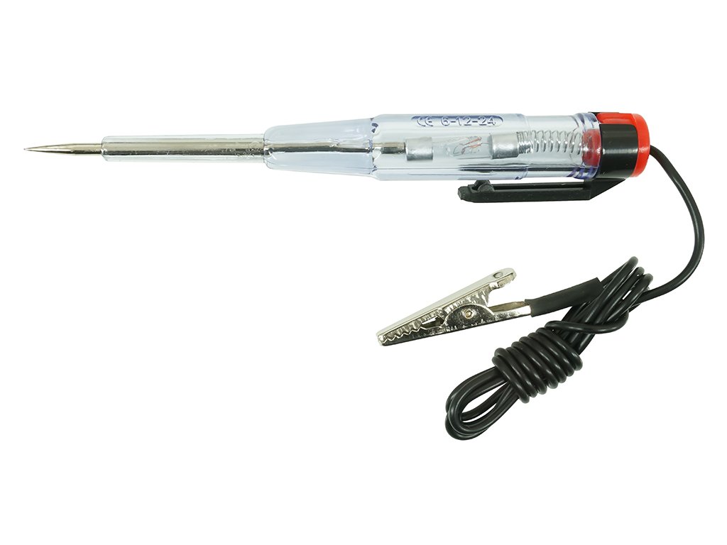 Автомобилен тестер за напрежение с вградена LED диода. Измервателен обхват от 6 V до 24 V. Дължина на кабела 90 см.
