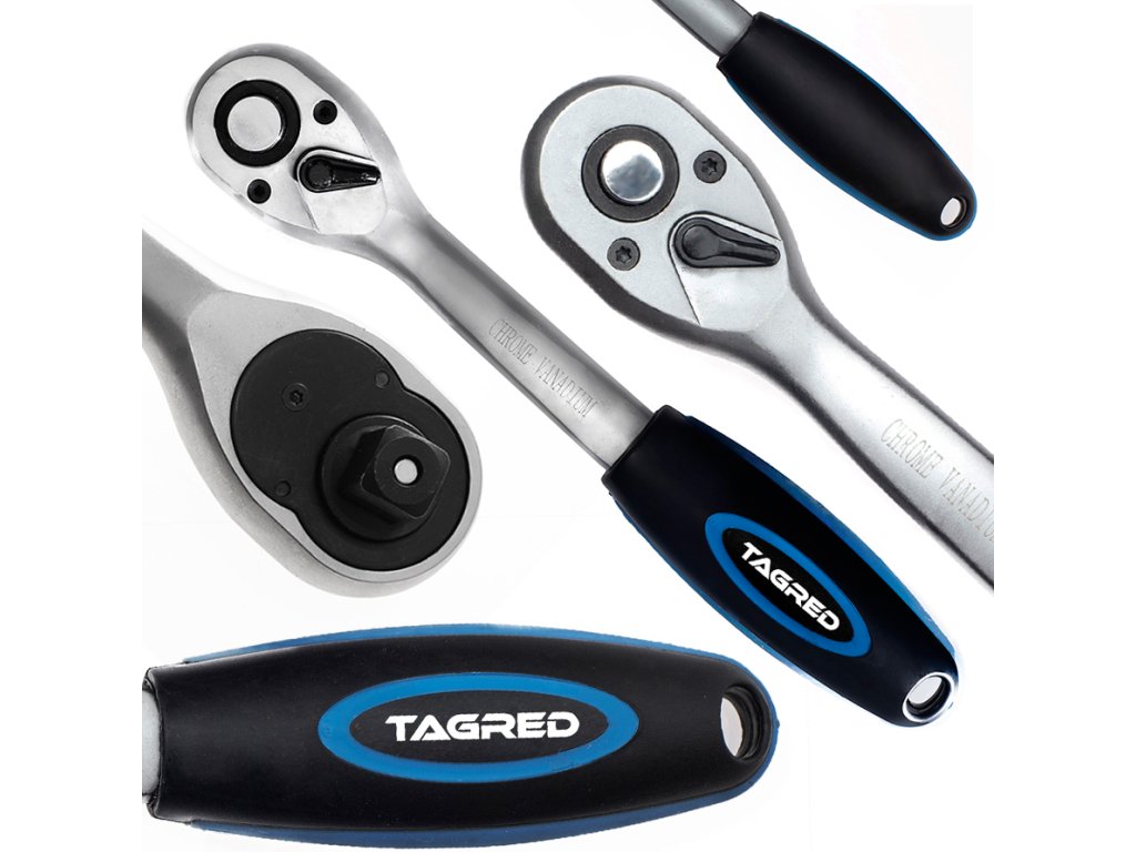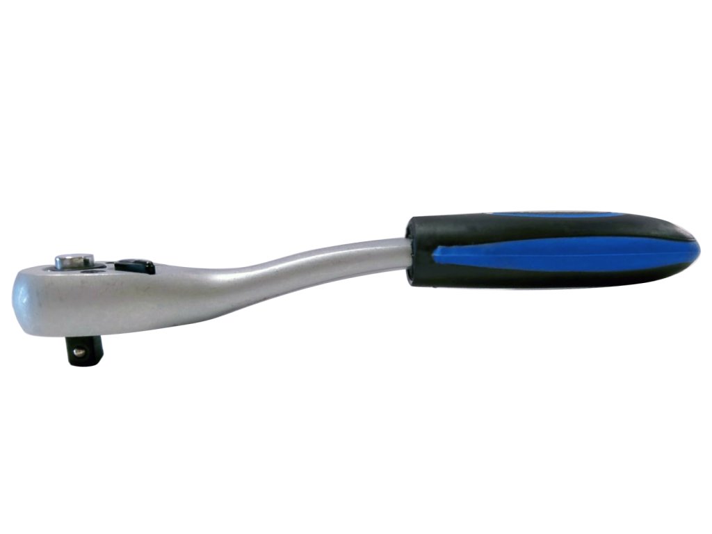 Здрава тресчотка изкривена 3/8" от премиум сегмента, изработена от хром-ванадиева стомана CrV, която гарантира изключителна здравина и устойчивост на повреди.