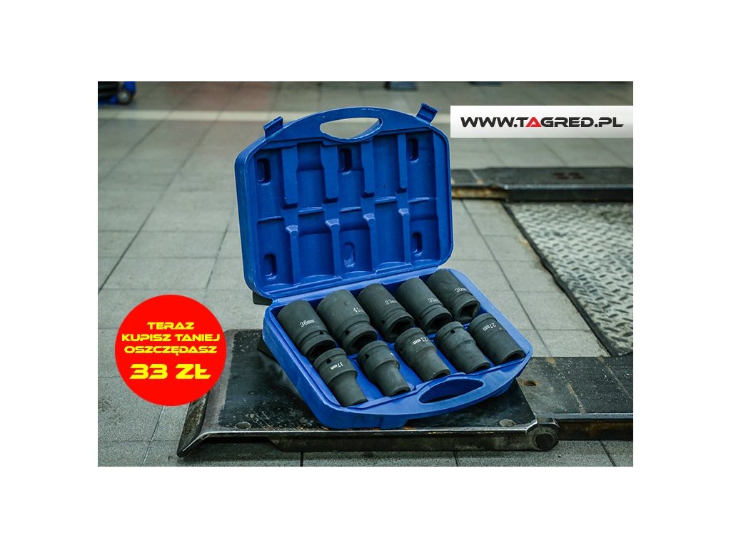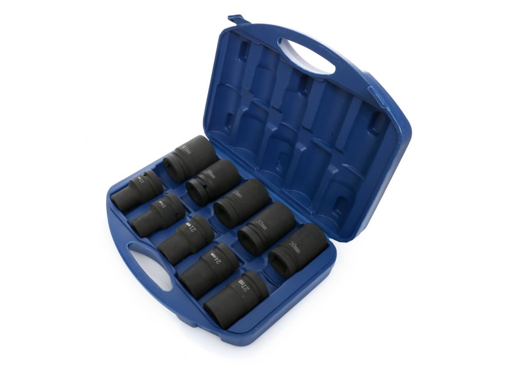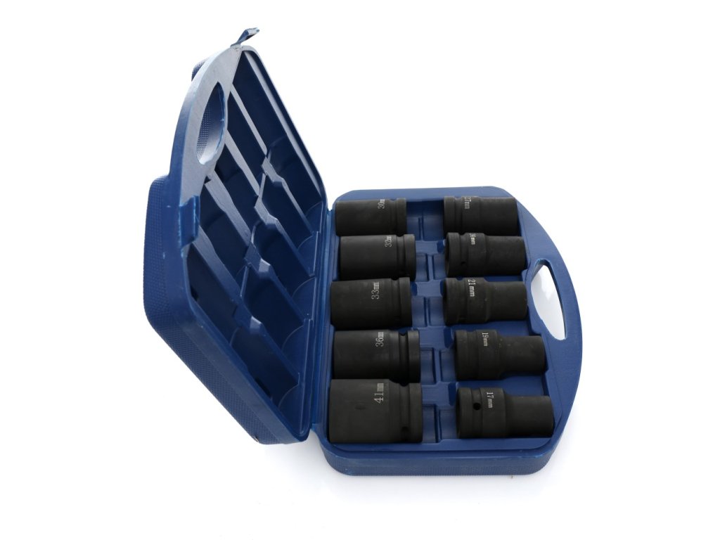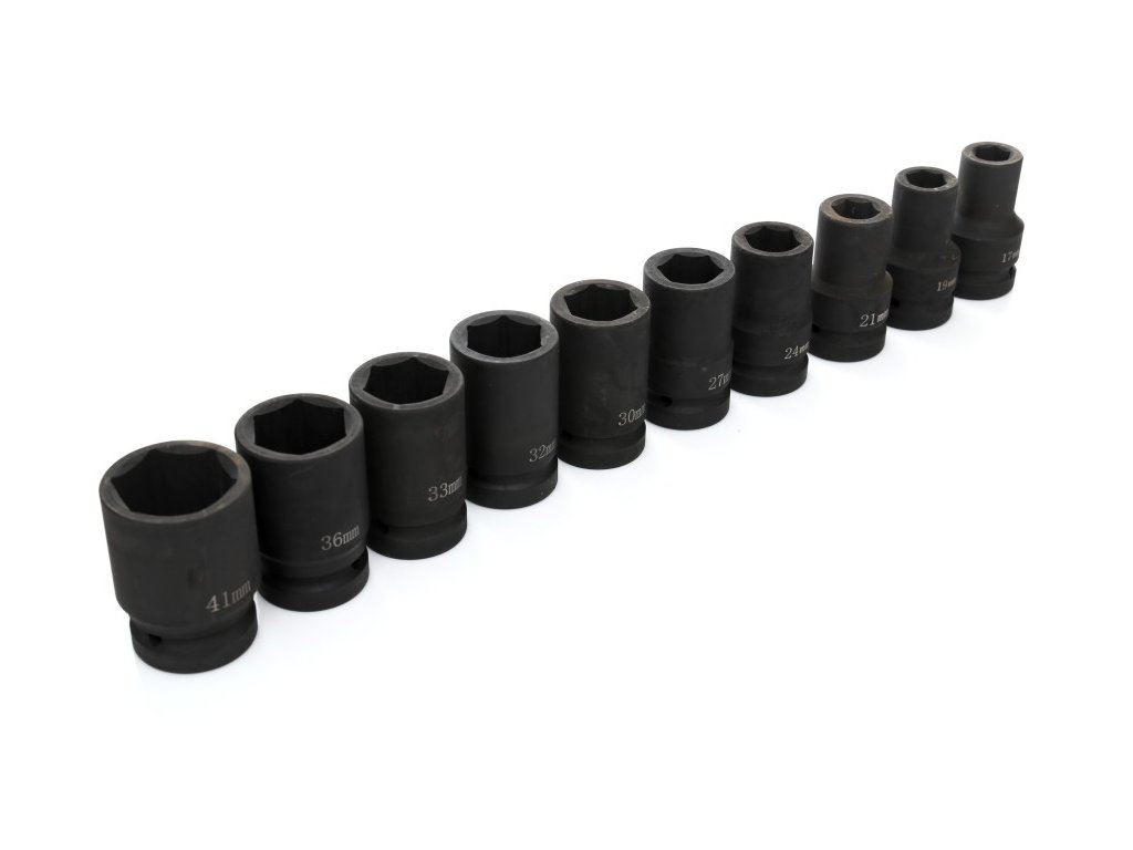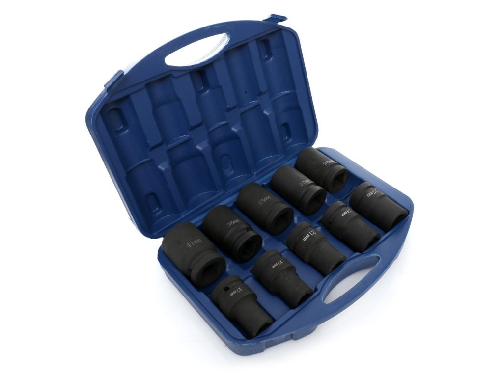 Професионален комплект шестостенни ударни вложки с размер 1" и диапазон 17-41 мм, предназначен за употреба с пневматични и електрически ударни гайковерти. Този комплект позволява ефективно завинтване, затягане и развиване на гайки и болтове с висока сила, което го прави идеален избор за автомеханци.