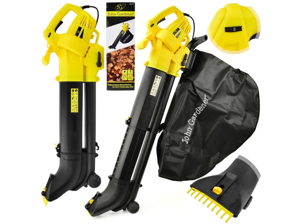 Прахосмукачката с дробилка и издухвач за листа John Gardener е оборудвана с електрически мотор с мощност 3300W и регулируеми обороти в диапазона 8000–14000 об/мин.