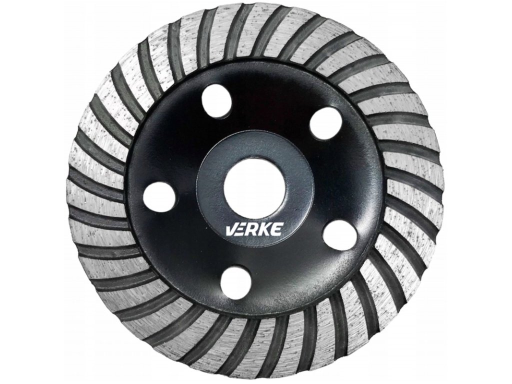 Турбо диамантен шлифовъчен диск за бетон с диаметър 125 мм VERKE V44200 е предназначен за шлифоване на бетонни повърхности с помощта на ъглов шлайфмашина. Благодарение на отличните технически характеристики дисковете предлагат дълъг експлоатационен живот. Съвременните методи на термична обработка и специалното покритие намаляват износването на диска и повишават неговата издръжливост. Дискът е идеален за: