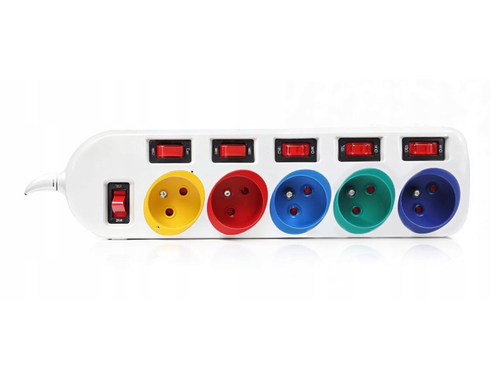 Този удължител с преобразувател против пренапрежение предлага 5 гнезда и дължина 3 метра, което позволява удобно захранване на няколко устройства едновременно, дори и на места, по-отдалечени от контакти. Благодарение на заземяването, той осигурява безопасност и защитава свързаните уреди от пренапрежение и колебания в напрежението. Кабелът е оборудван с ключ и ергономичен ъглов щепсел, което улеснява включването дори в затворени пространства.