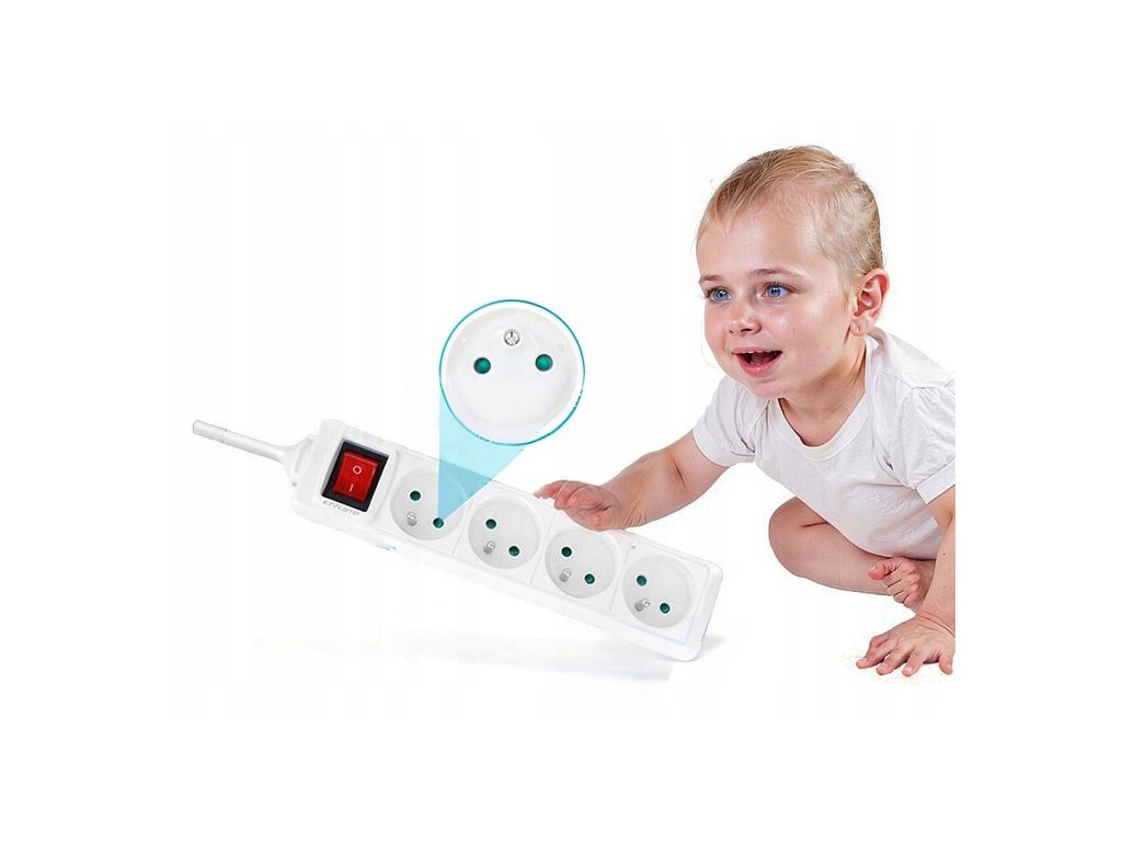 - Защита от деца: Удължителят е оборудван с детска защита, която предпазва от нежелан контакт с електрическите части.