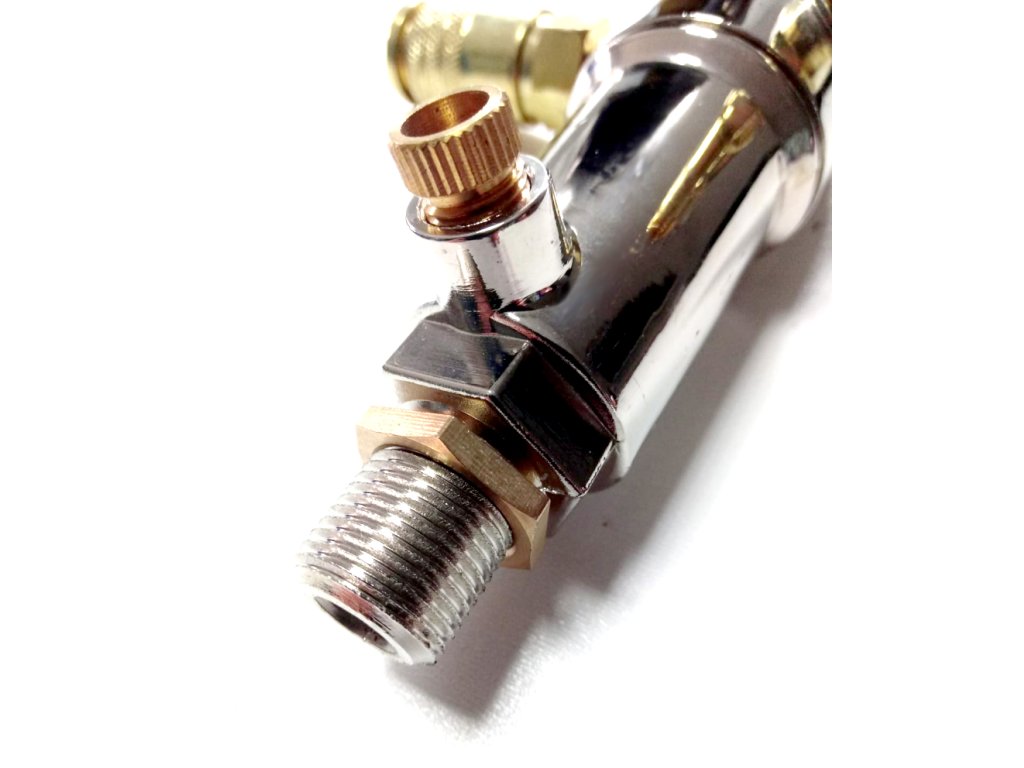 Универсален редуктор и въздушен филтър 3/8". В комплекта са включени също 2 бързи соединителя с резба 1/4" безплатно.