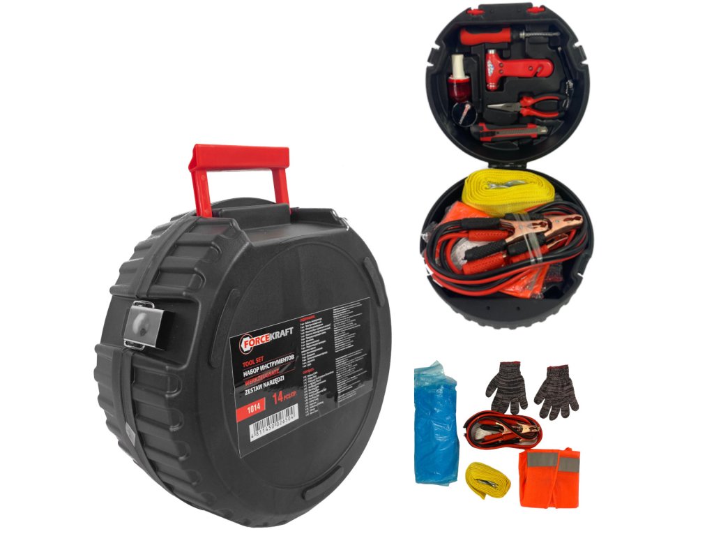 Универсален комплект за кола – теглещо въже/колона/светлоотразителен елек, 14 бр.