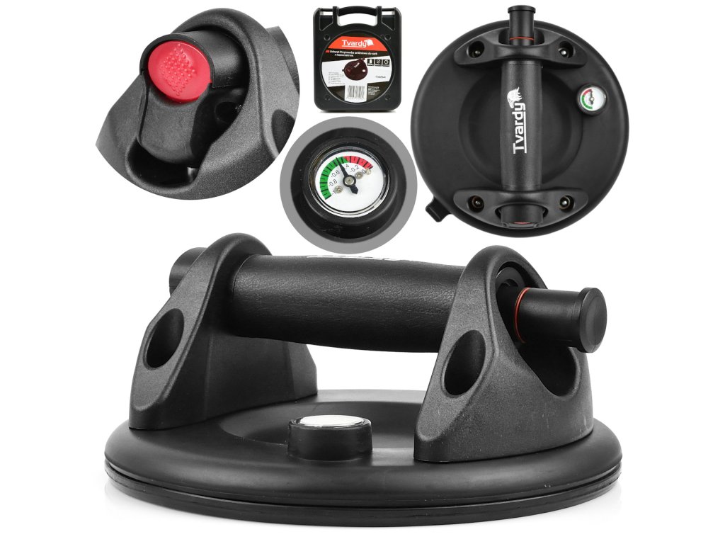 Вакуумна вендуза за стъкло с манометър е предназначена за безопасно пренасяне на различни елементи с гладка повърхност. Помпеният цилиндър е изработен от здрав алуминий и е покрит с комфортен силиконов материал, осигуряващ сигурен и надежден захват по време на работа.