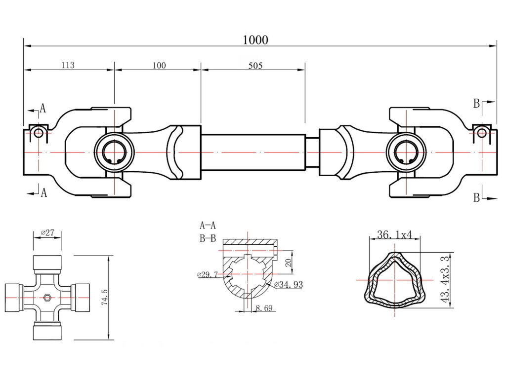 - Дължина на несглобения вал: 1000 мм