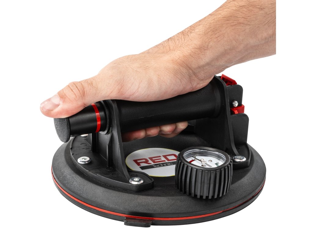 Дръжката е оборудвана с аналогов манометър, който позволява мониторинг и контрол на налягането между гума на вендузата и материала. С ясна скала бъдете уверени, че по всяко време ще знаете кога захвата започва да отслабва и е време за повторно изпомпване.