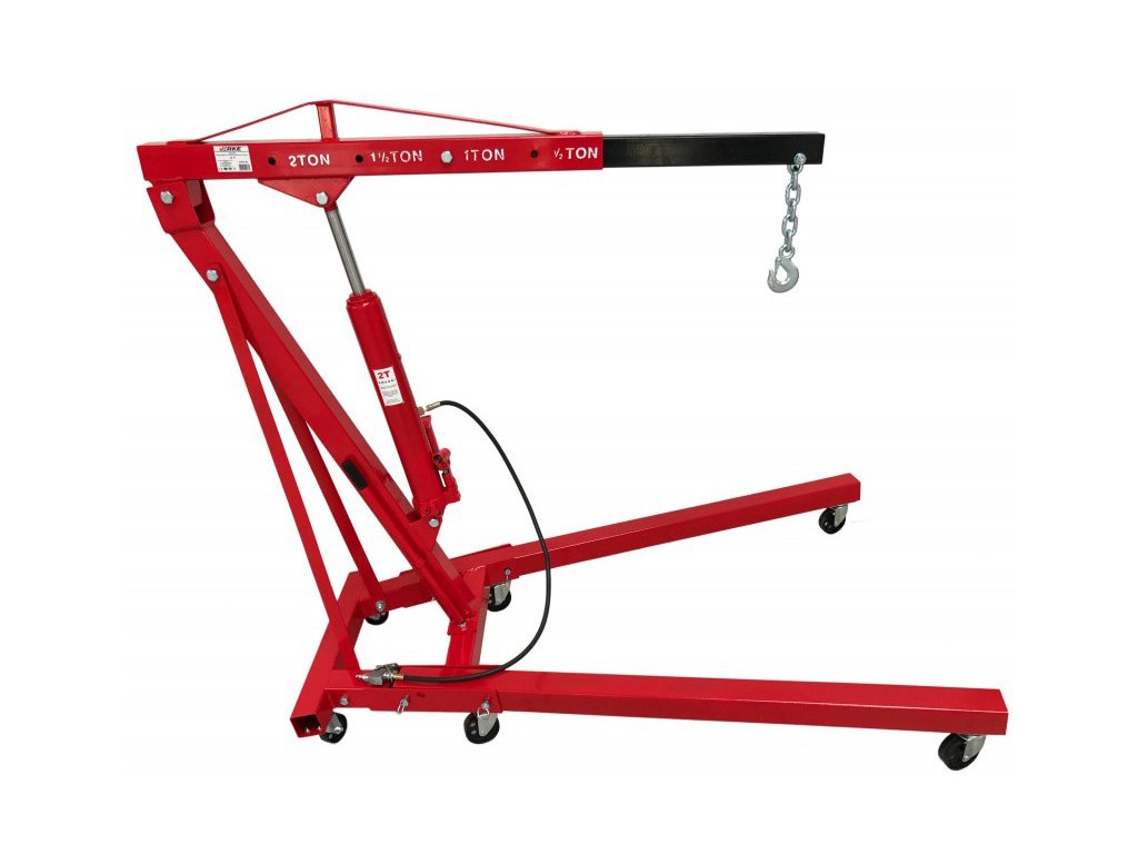 Водещото устройство е изработено от висококачествени материали, което гарантира здрава и прецизна конструкция за дългосрочна и безопасна работа. Кранът е оборудван с колела, които улесняват преместването му. Оборудван е с много бърза хидравлично-пневматична помпа. Може да се управлява ръчно или с помощта на компресор. Идеален за употреба в работилници, индустрия; за демонтаж на автомобилни двигатели или транспортиране на тежки предмети и оборудване и други.