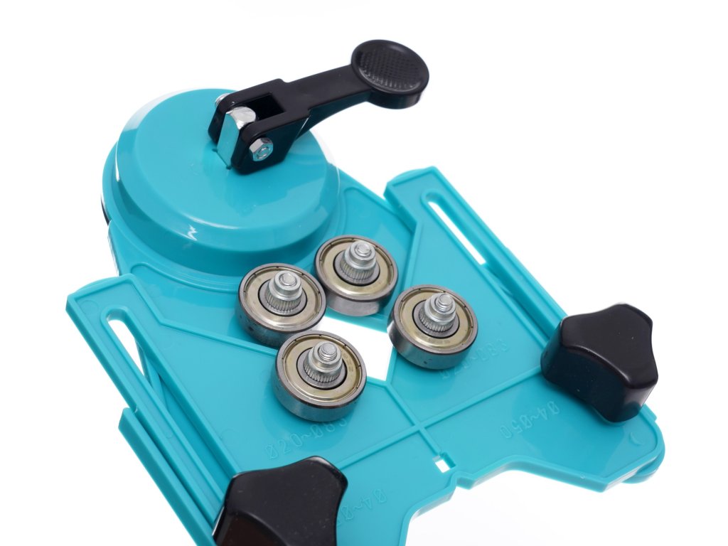 Основните предимства на нашата водеща приставка включват лесно и бързо регулиране на размера на свредлото, което осигурява бърза адаптация за свредла с диаметър от 4 до 83 мм. Освен това разполага с четири лагера за максимална стабилност и силна вендуза, която гарантира здраво и сигурно закрепване по време на пробиване.