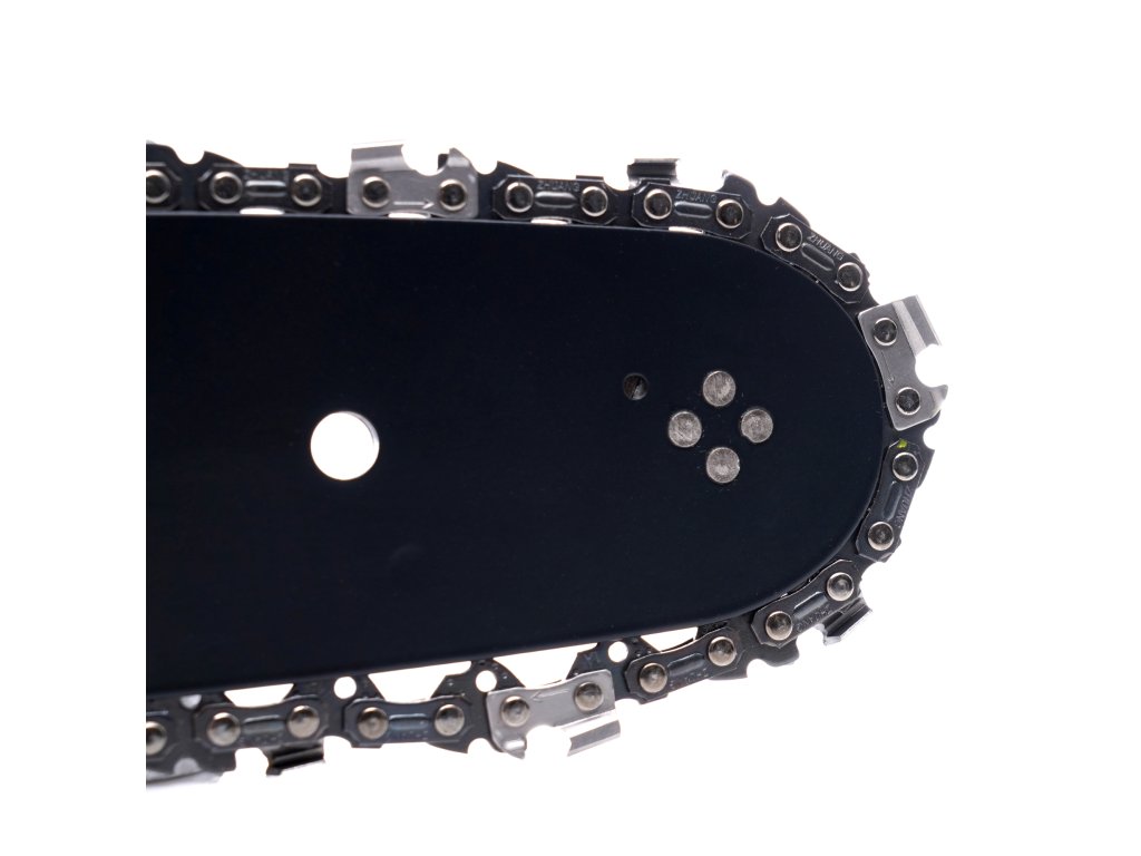 Водещите шини са изработени от висококачествен, издръжлив материал, който е устойчив на износване и високи температури, възникващи при работа с верижна резачка. Този материал се представя отлично дори в най-тежки условия, без да се повреди по какъвто и да е начин. Водещите шини ефективно предават мощността на триона, което осигурява изключителна ефективност на рязане и са завършени със зъбно колело.