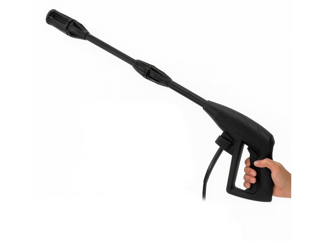 Myčka je vybavena hliníkovým čerpadlem pro dlouhou životnost, systémem rychlospojek pro snadné připojení hadice a příslušenství a praktickými držáky na kabely a nástavce. Kompaktní a ergonomická konstrukce usnadňuje přenášení i skladování.