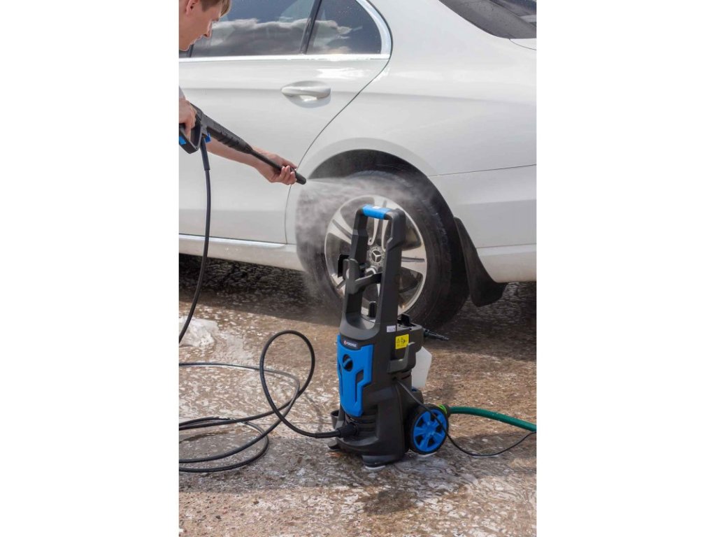 - Ефективно почистване: Лесно премахва мръсотия, упорити петна, отлагания и наноси от автомобили, тераси, алеи, градински мебели и други повърхности.