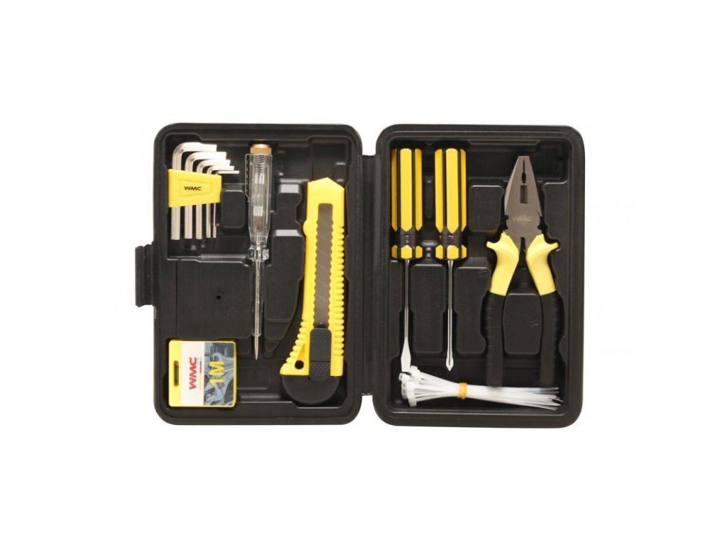 Практичен комплект от 33 инструмента марка WMC, подходящ за домашна работилница и хоби употреба. Компактен и универсален избор от основни инструменти, който всеки майстор ще оцени или като подарък.