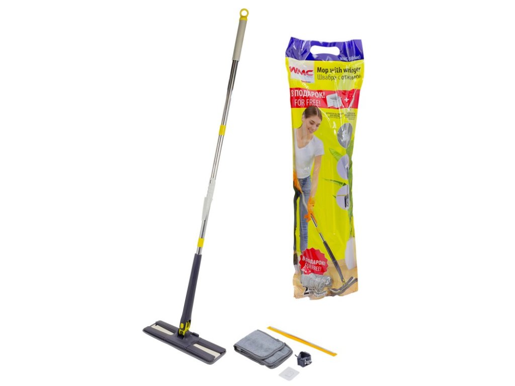 WMC моп с механизъм за изстискване (тип пеперуда), стъргалка и 3 резервни накрайника