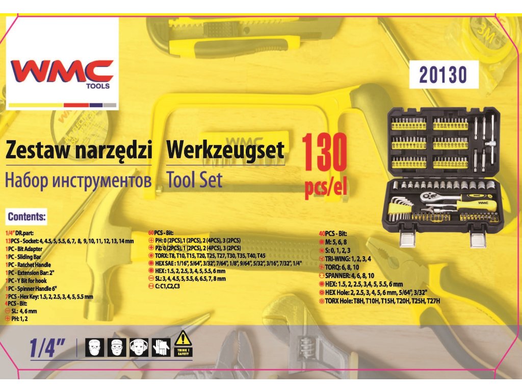 WMC комплект инструменти 130 бр. – ключове, отвертки и битове