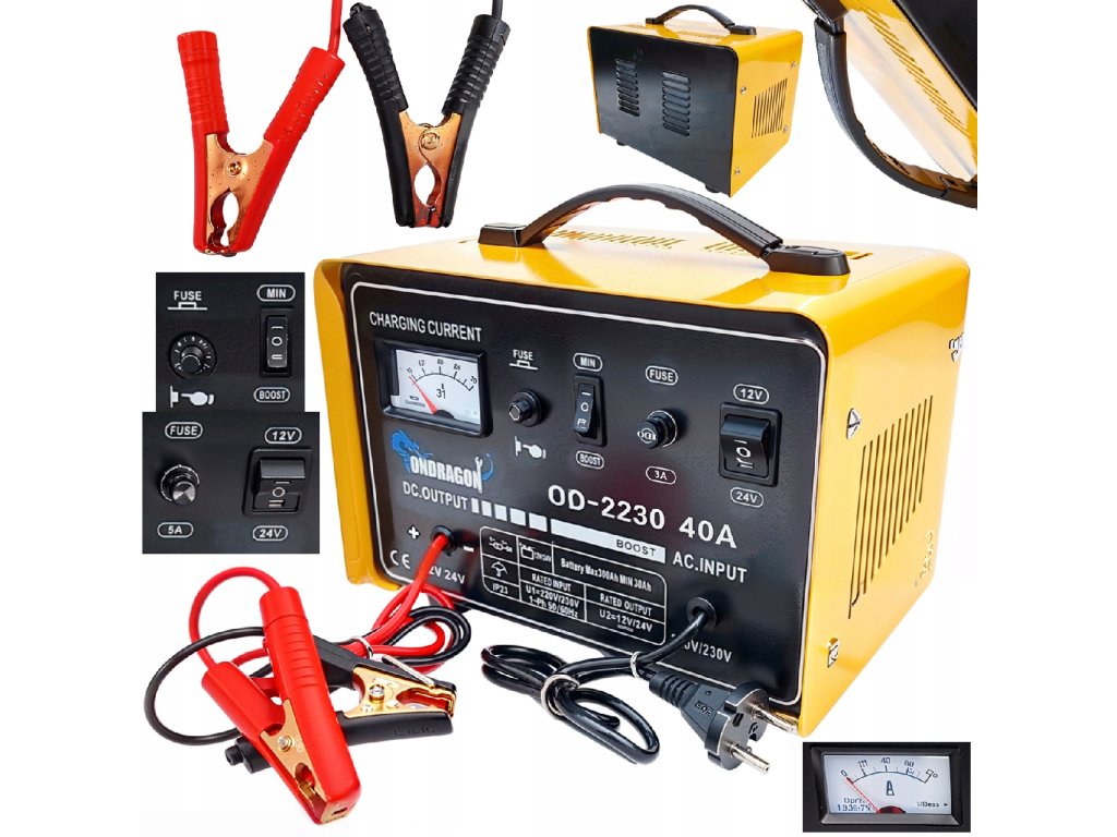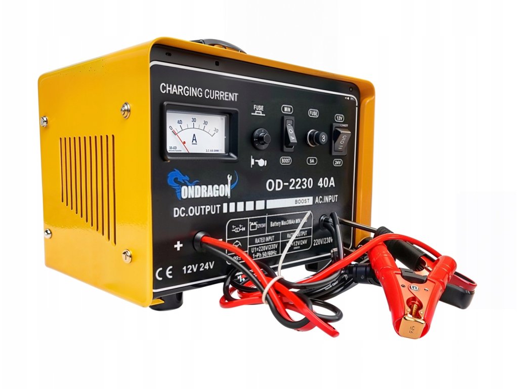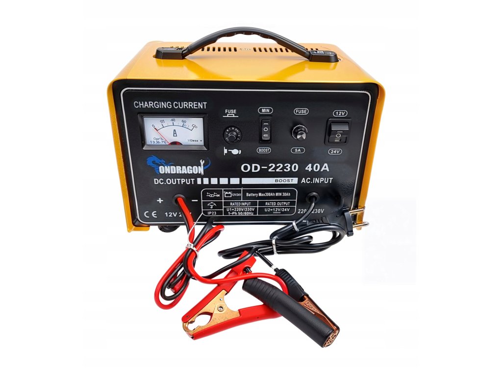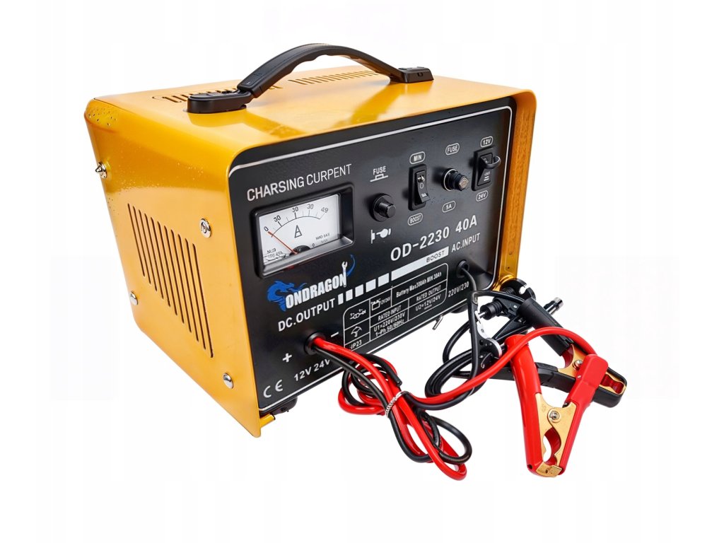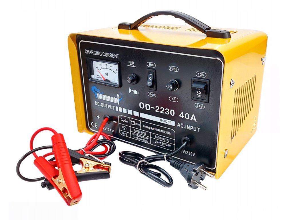 Зарядно устройство за автомобилни акумулатори 12/24V със стартираща функция 40A е мощно устройство, създадено за ефективно зареждане и стартиране на двигателя. Подходящо е за акумулатори с напрежение 12V и 24V и капацитет от 30Ah до 300Ah. Идеален инструмент за автосервизи, работилници и домашни гаражи.
