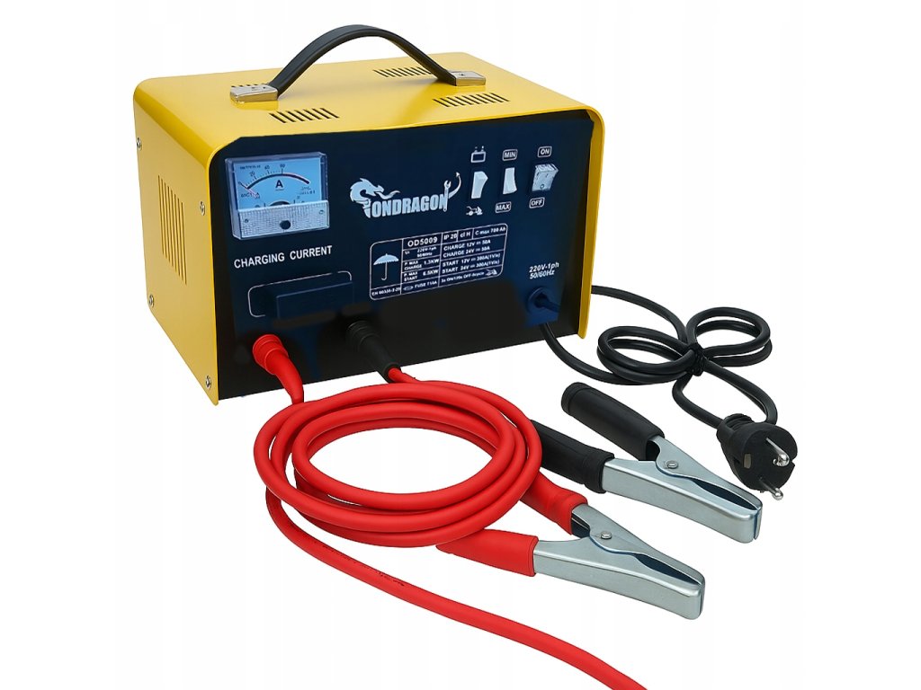 Зарядно за акумулатор 12/24V PM-CD-50RWL с функция стартер е идеалният помощник в работилницата, гаража или сервиза. Благодарение на високия стартов ток от 300 A, устройството осигурява не само бързо зареждане, но и стартиране на бензинови и дизелови двигатели при разредена батерия. Поддържа зареждане на акумулатори с капацитет до 700 Ah и разполага с функция за бързо зареждане. Практичният вграден амперметър информира за степента на зареждане, а металната вентилирана конструкция гарантира безопасна и ефективна работа.